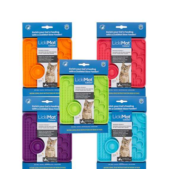 Originalna LickiMat® Classic Catster™ podloga je popolna za surovo hrano, mokro hrano, brikete, priboljške, jogurt, namaze, tekočo hrano in druge priboljške. Deluje kot počasni hranilnik in je zdrava ter zabavna alternativa klasični posodi za hrano. Na voljo je tudi mini posodica za hidracijo (juha, mačje mleko, druga tekočina). Izbirate lahko med različnimi barvami.