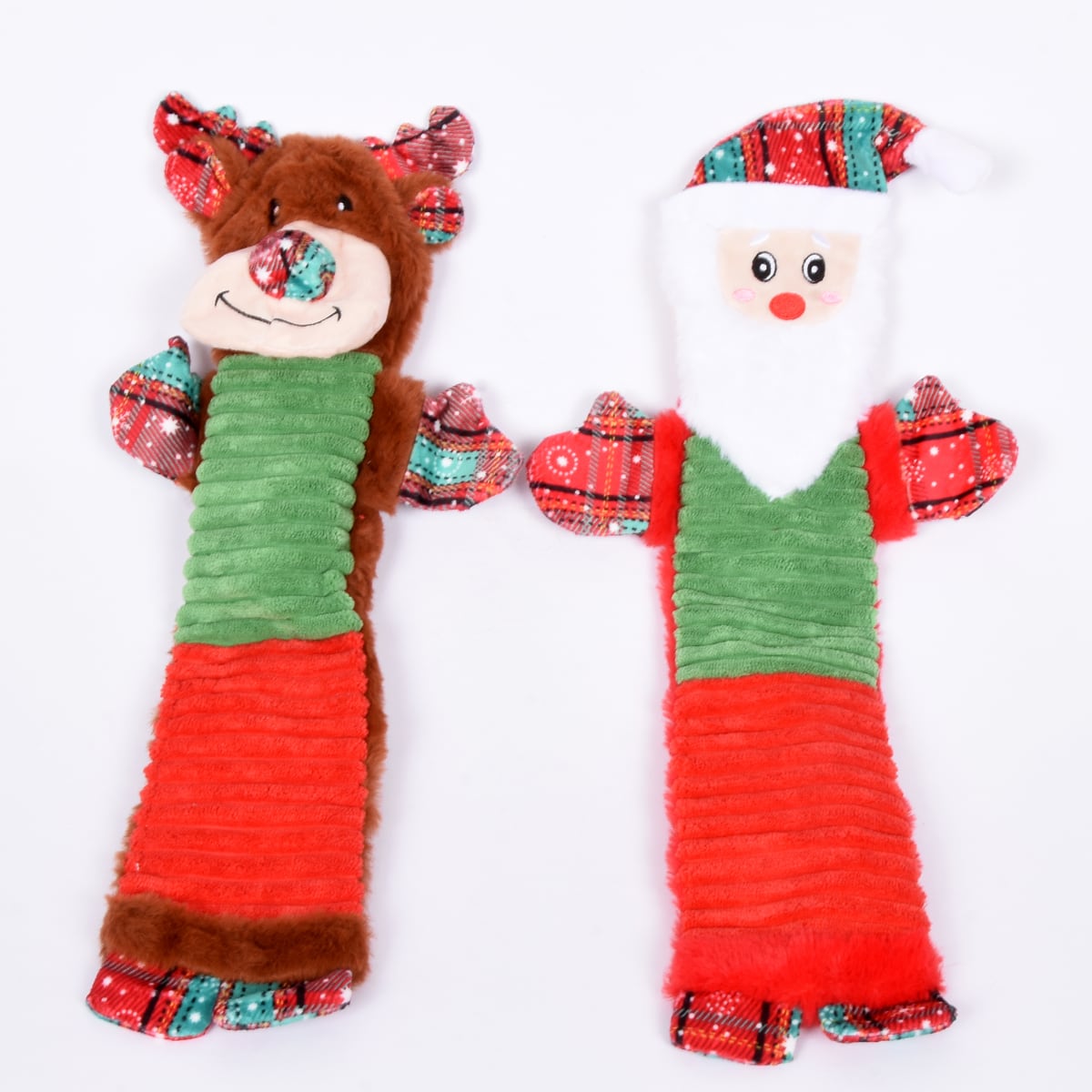 Notranji šumeč material ob vsakem prijemu poskrbi za dodatno zabavo, vgrajena piska pa poskrbi, da je igrača psu še bolj zabavna in zanimiva. Zaradi mehke tkanine in božičnega videza sta popolni tudi kot praznično darilo. Primerna sta za pse vseh velikosti in starosti, od mladičkov pa do starejših kužkov, ki uživajo v igri in crkljanju z igračko.