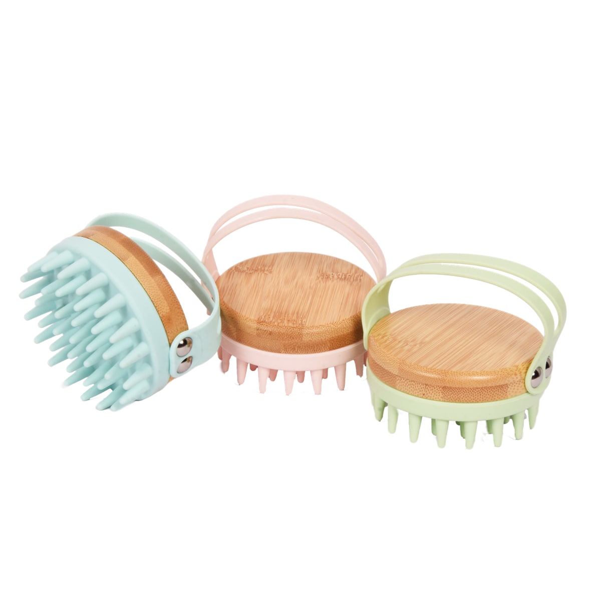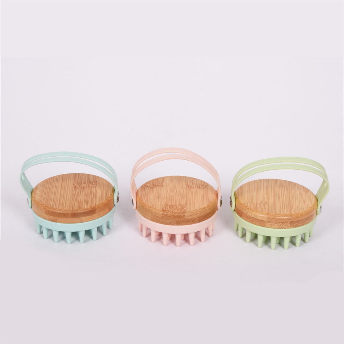 Masažna krtača za hišne ljubljenčke iz bambusa in silikona v dveh barvah.