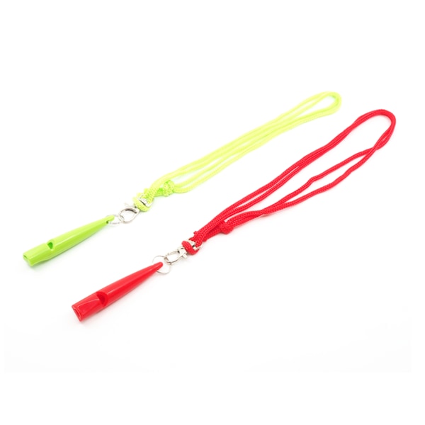 Enotonska piščalka z vrvico v različnih barvah.