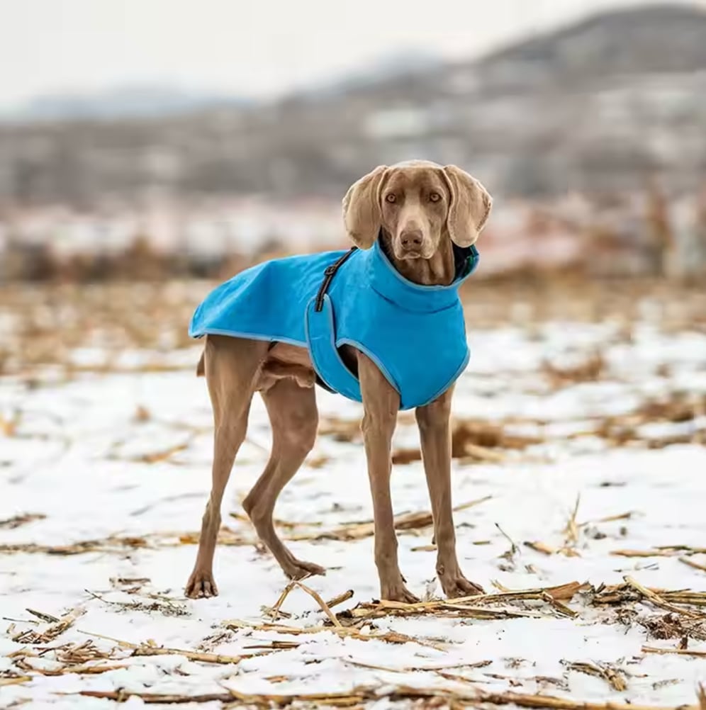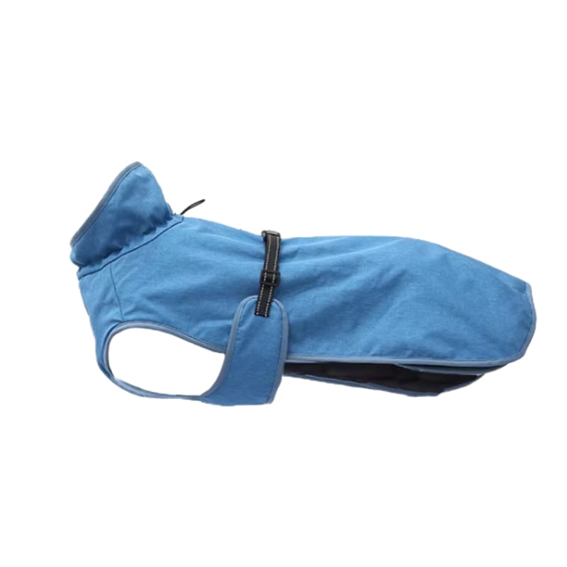 Plašč ima na vratnem delu elastiko, ki omogoča nastavitev glede na obseg vratu vašega psa. Za pritrditev služi nastavljiv trak z zaponko, ki omogoča prilagajanje obsegu telesa psa. Trak vsebuje odsevne šive za boljšo vidljivost in varnost vašega ljubljenčka.
