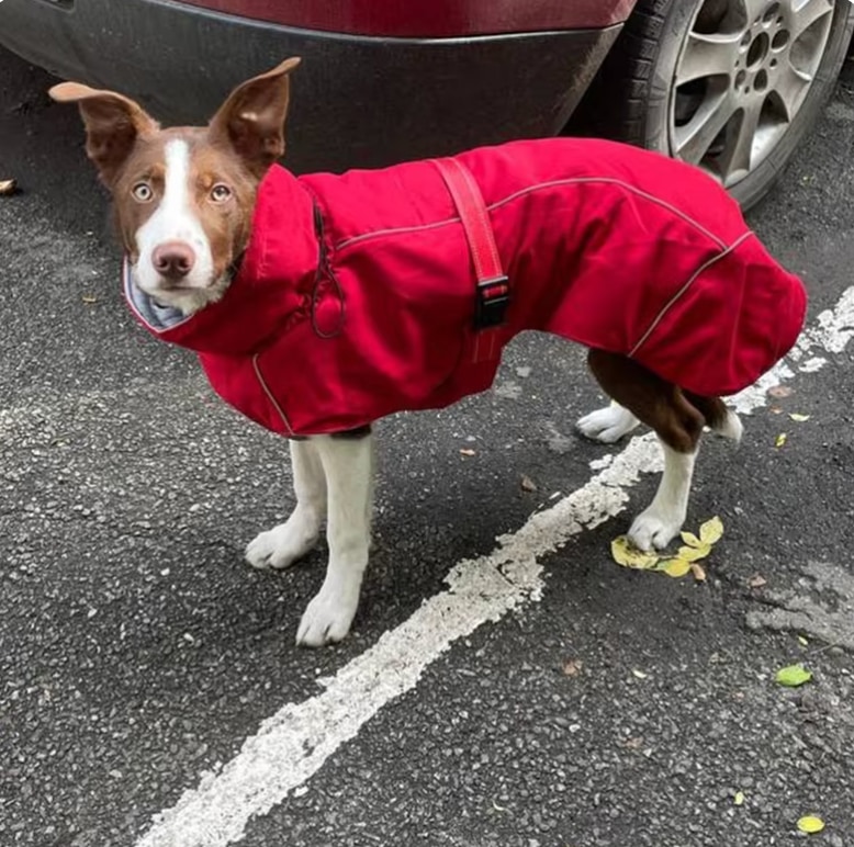 - po celotni dolžini plašča sta dva odsevnika, ki skrbita za maksimalno vidljivost psa