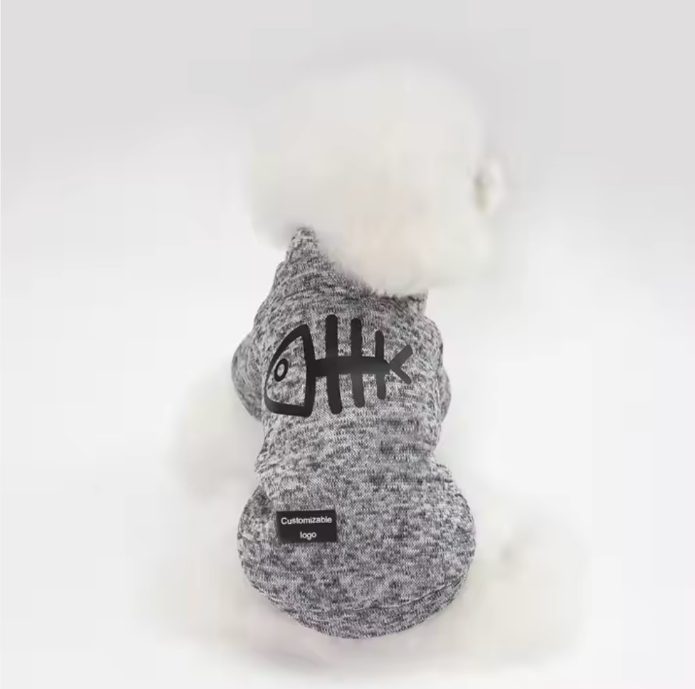 Pulover ni le uporaben, ampak tudi stilsko dovršen z veliko natisnjeno ribico na hrbtu. Raztegljiv material omogoča odlično prileganje. Pulover za pse je enostaven za vzdrževanje. Ta pulover bo vašemu psu zagotovil toploto in udobje, hkrati pa bo pritegnil poglede.