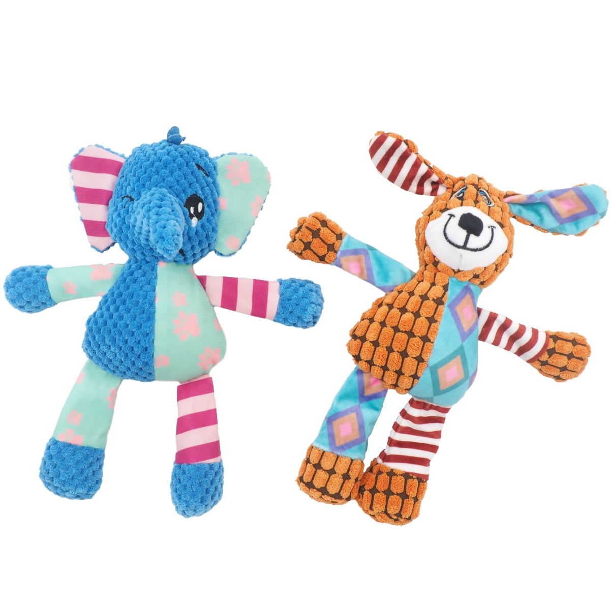 Pawona razigrane igrače Corteo so barviti kuža in slonček iz mehkega materiala s piskajočim trebuščkom- popolna za stiskanje ali igro.