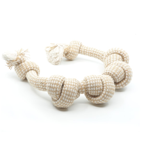 Dolga konopljina vrv s 6. vozli v izmeri 65 cm. Primerna za pse srednje in večje velikosti. Varna in trpežna igrača, ki bo poskrbela za dolgotrajno zabavo.
