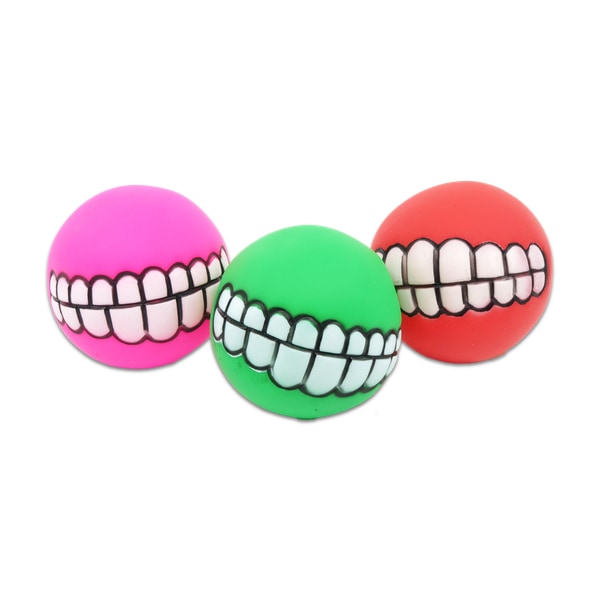 Žogica z zobki iz vinila, 8 cm. S to žogico bo vsaka igra postala še bolj smešna, ko boste opazovali, kako vaš pes “kaže zobe”. Žogica je lahka s pisko, idelana za metanje in prinašanje.