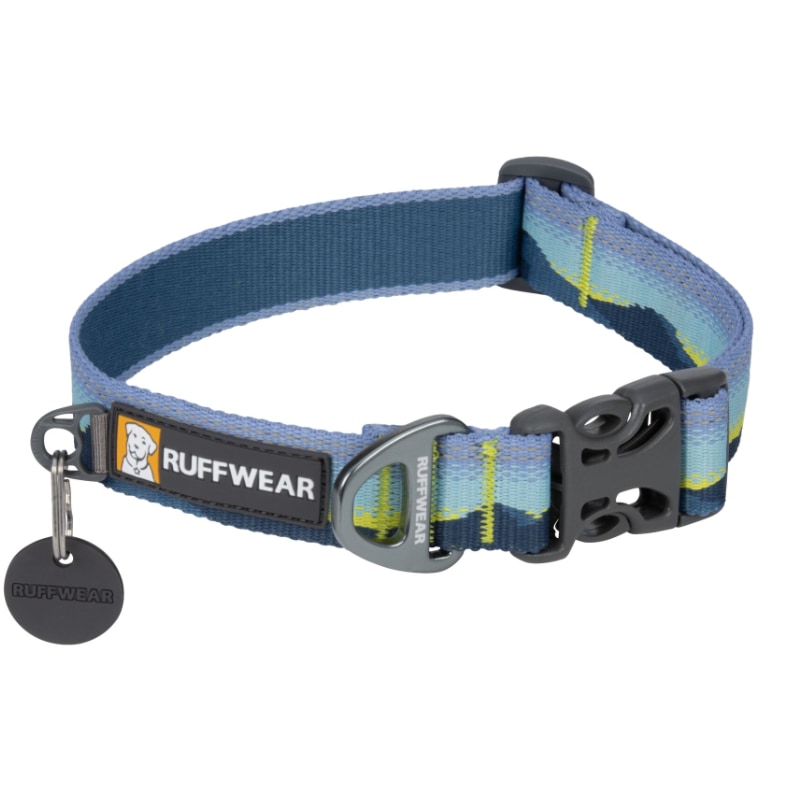 Ruffwear Crag ovratnica Alpine Dawn je vzdržljiva pasja ovratnica, ki jo lahko uporabljate vsak dan. Opremljena je s svetlečim Tubelok™ trakom in preprosto zaponko na strani, ki se enostavno odpre. Svetleča nit je vpletena v udoben in vzdržljiv trak, ki je na voljo v enobarvnih barvah in vzorcih, navdihnjenih z naravnimi svetlobnimi vzorci v naših najljubših pokrajinah.