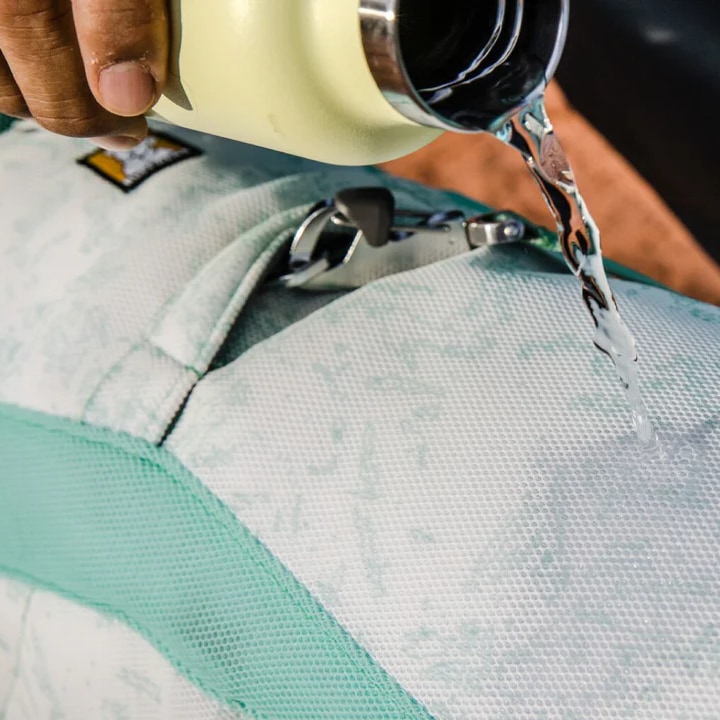 Svetla barva odbija sončno svetlobo in nudi UV zaščito. Plašč lahko namestite tudi čez oprsnico, saj ima na vrhnjem delu odprtino za pripenjanje. Lahko ga potopite tudi v slano vodo vendar ga nato po uporabi dobro operite, da se sol ne nabere v pore plašča, saj bi se s tem zmanjšalo njegovo delovanje.