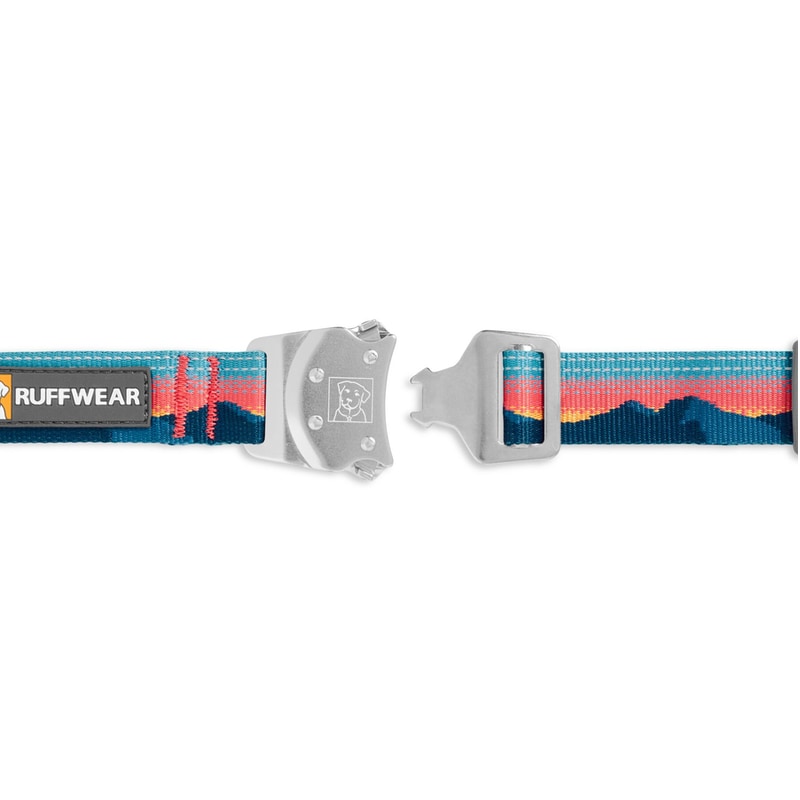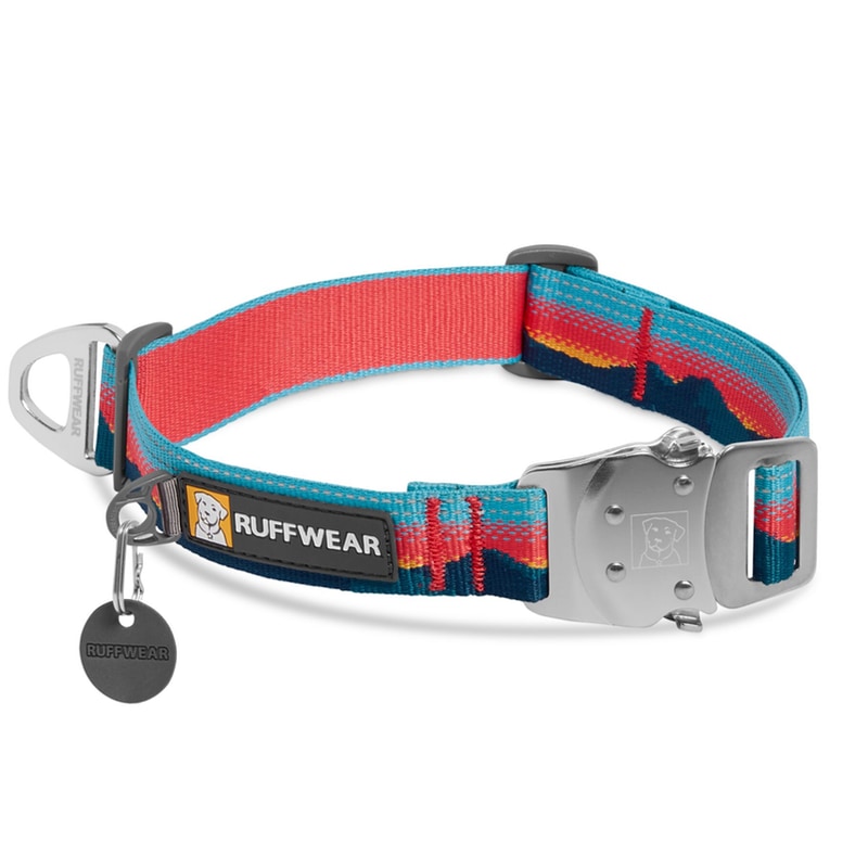 Ruffwear Top Rope ovratnica Sunset je vzdržljiva ovratnica s kovinsko zaponko, primerna tudi za večje in močne pse.